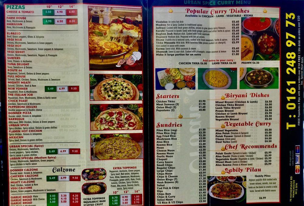 Welcome to Urban Spice, a vibrant fusion restaurant located at 70 Hathersage Road, Manchester. This innovative establishment blends the rich flavors of traditional Indian cuisine with beloved favorites like pizza and burgers, offering a unique dining experience that caters to all palates.